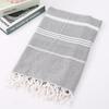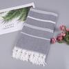 Custom Pure Cotton Turkish Striped Beach and Sauna Towel with Non-Stick Sand and Tassels for Adults