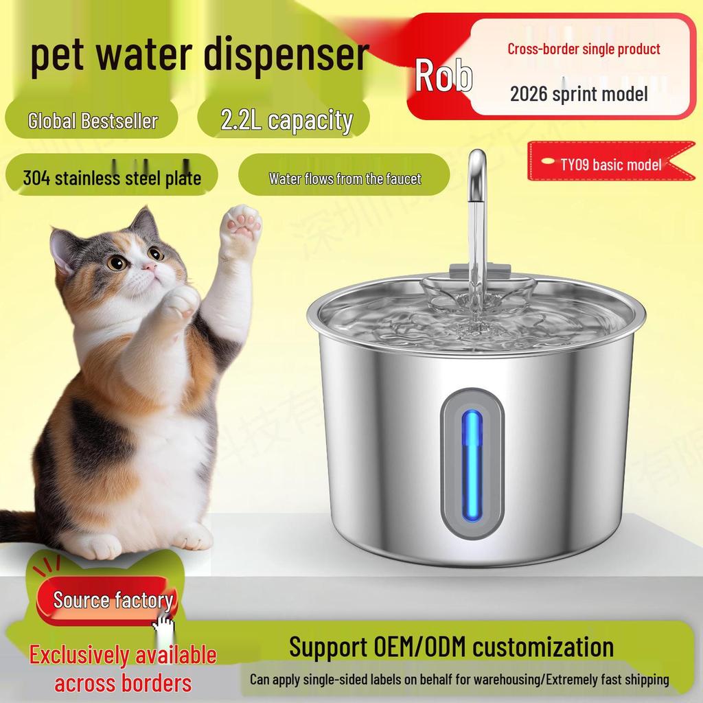 2.2L Stainless Steel Pet Water Dispenser: Silent Smart Circulation Feeder for Dogs and Cats