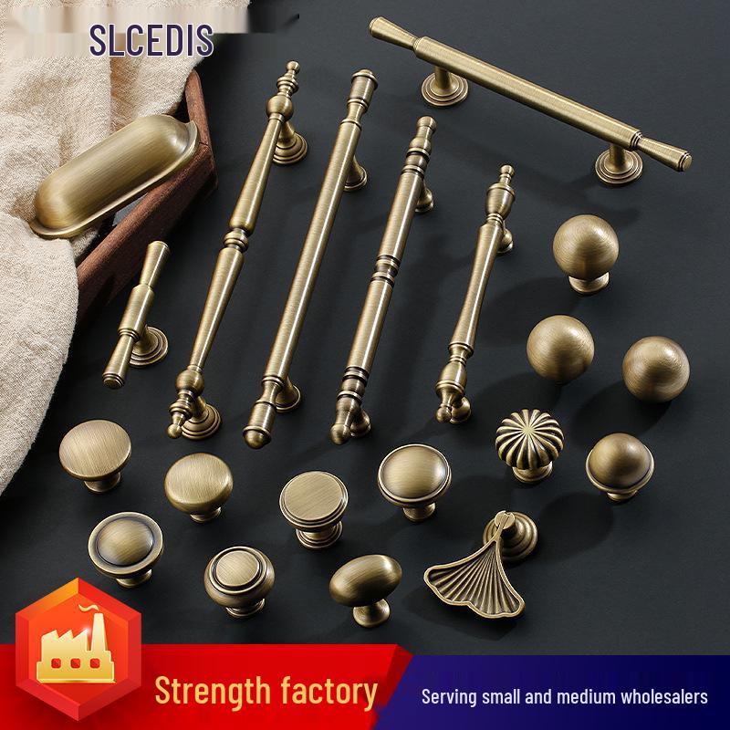 Vintage Brass Handle for Wardrobes, Cabinets, Drawers, and French Doors - Single Hole Light Luxury Style Furniture Hardware