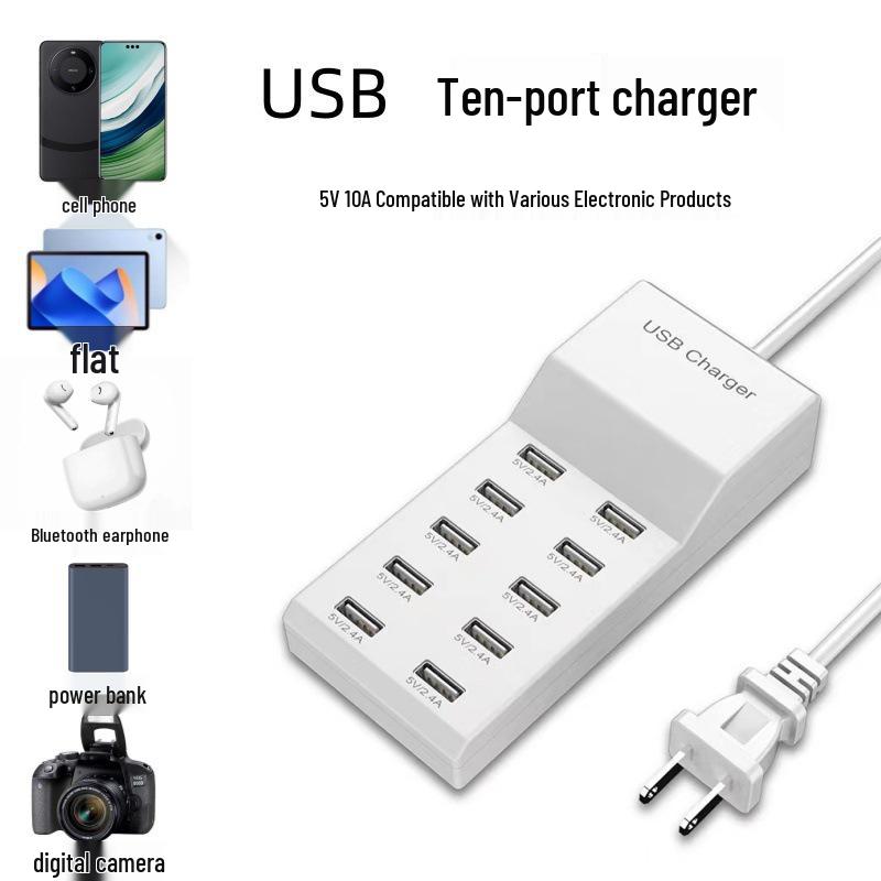 Multi-Port USB Charger: 10-Port Fast Charging Universal 5V Phone Charger