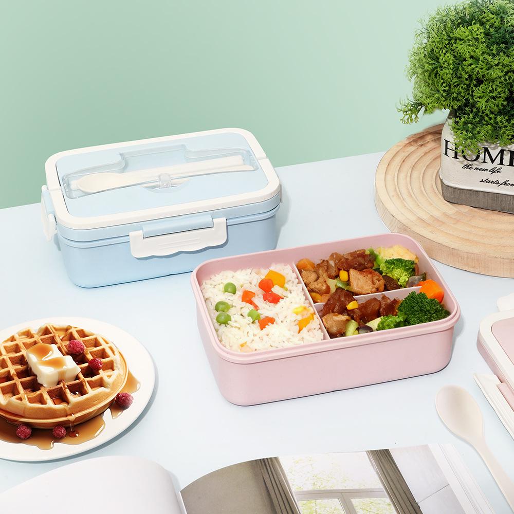 Wheat Straw Lunch Box Set - Microwave Safe & Sealed for Students and Office Workers