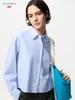 The UNIQLO Japan Oxford Shirt features a short length and a boxy silhouette. This blouse is available in various colors and offers comfort without sheer transparency. The patterns may vary slightly between individual products as well.
