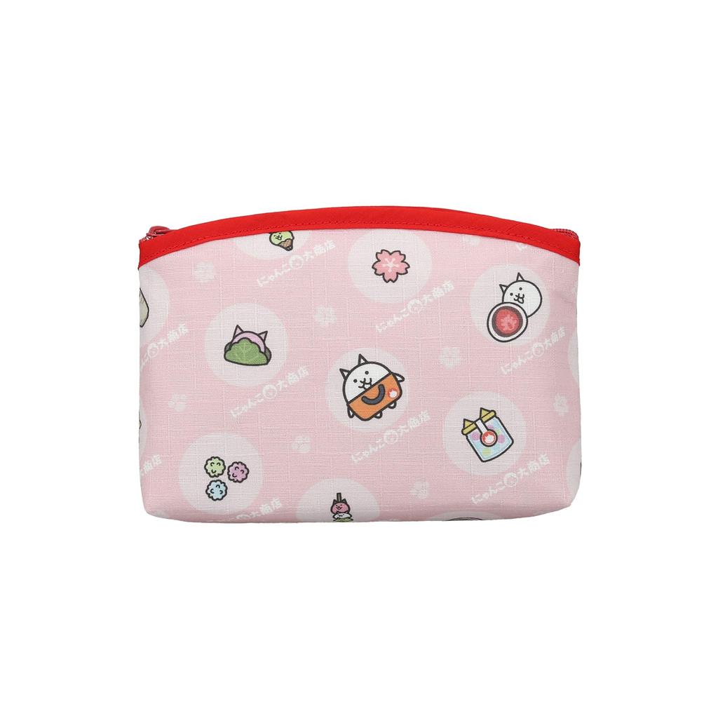 Nyanko Daishouten Original Bottom-Sewn Pouch, All-Over Pattern, Sakura Blue