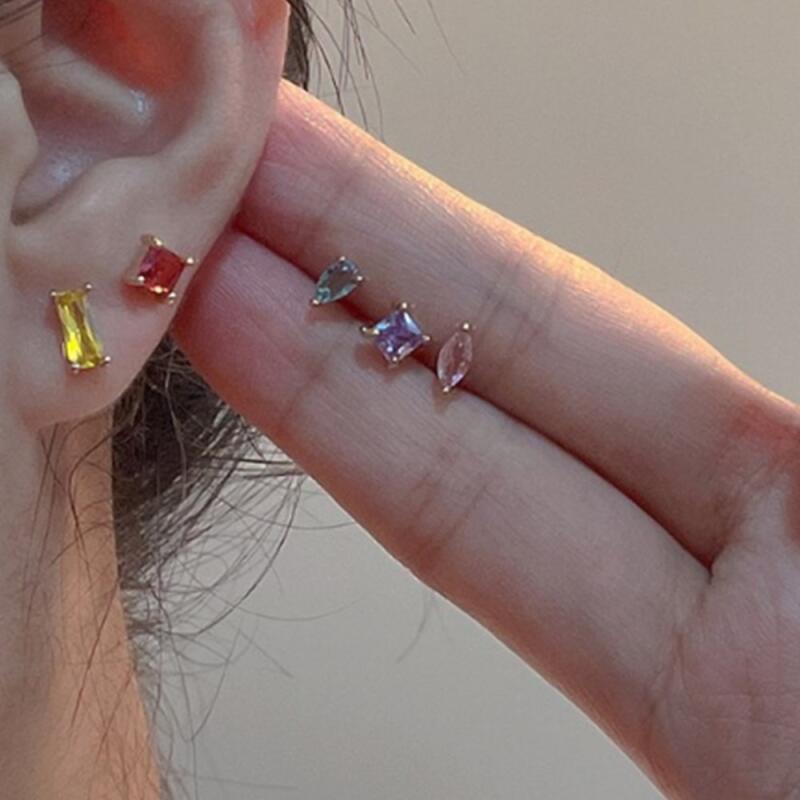 Mini Ball Earrings Bling Colorful Rainbow Transparent Cubic