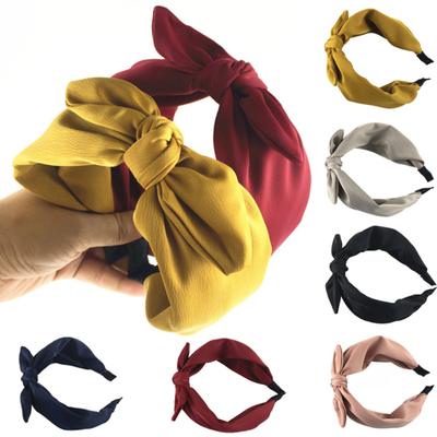 Women Solid Color Bow-Knot Hair Hoop Hairband Wide Edge Headband Accessories