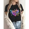 European Size Women'S Casual T-Shirt with Vibrant Heart Butterfly Print - Short Sleeve, Round Neck, Slim Fit