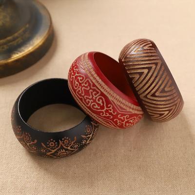 Retro Chinese Style Bracelet Wide Ethnic Style Bangle Carving Wooden Bangle Wrist Bracelets