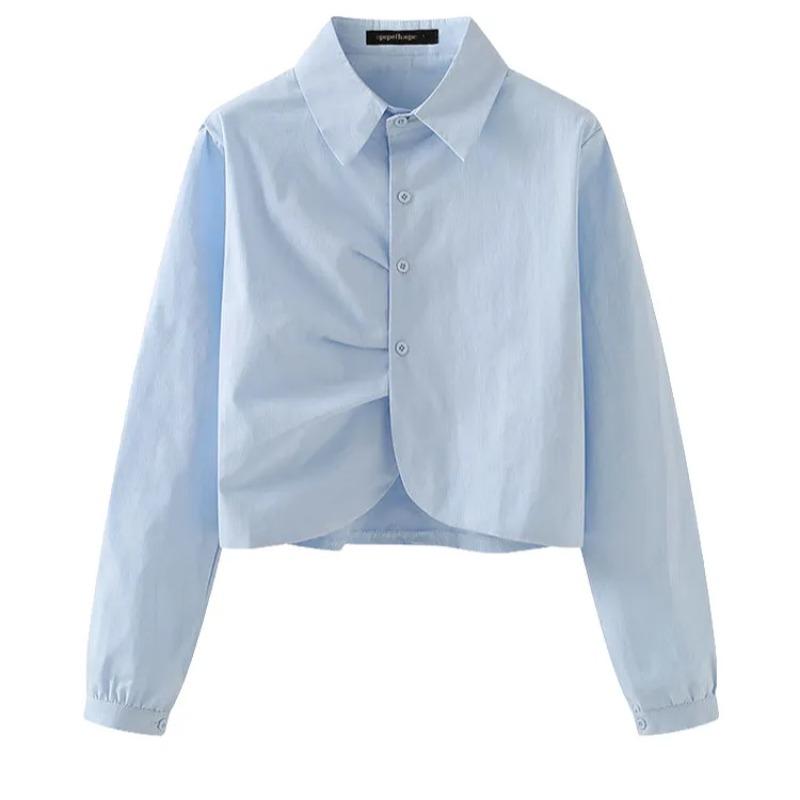 Niche Pure Cotton Design Pleated Fashionable Women's Spring and Summer New Korean Style Casual Long-sleeved Shirt White Short Shirt