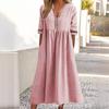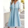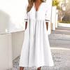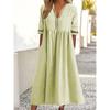 VEZFAA Women's Fashion Summer Spring Solid Color Print Short Sleeve V-Neck Loose Waistline Casual Dresses