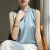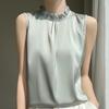 Sleeveless Blouse Ruffled Mandarin Collar Satin Tank Top