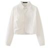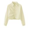 Spring Summer Women Cropped Shirt Side Twist Detail Button Down Long Sleeve Casual Chic Blouse Tops