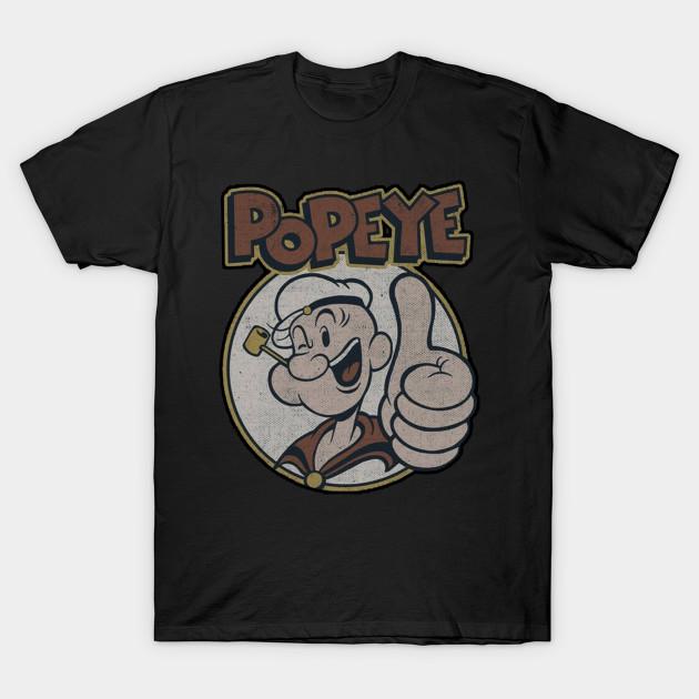Men Black Print T-shirt Popeye No-Cut Transfer Paper Print Cotton Tshirt