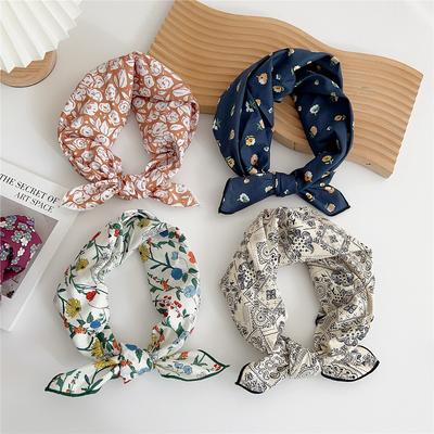 Hair Band Small Square Scarf Sunscreen Printed Silk Scarf Fashion Flower Print Scarves Ladies