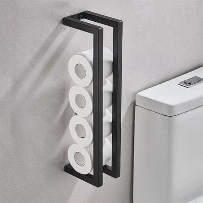 No Drill Wall Mounted Toilet Paper Holders Stainless Steel Square Bathroom Kitchen Tissue Roll Stand Black Bathroom Organizer