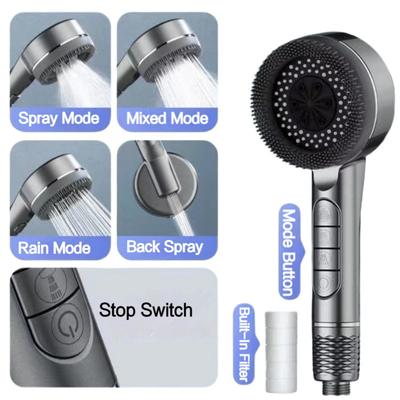 2024 New Household Multifunctional Filter Shower Head 4 Modes Switch 1-Button Water Stop with Massage Brush Bathroom Accessories