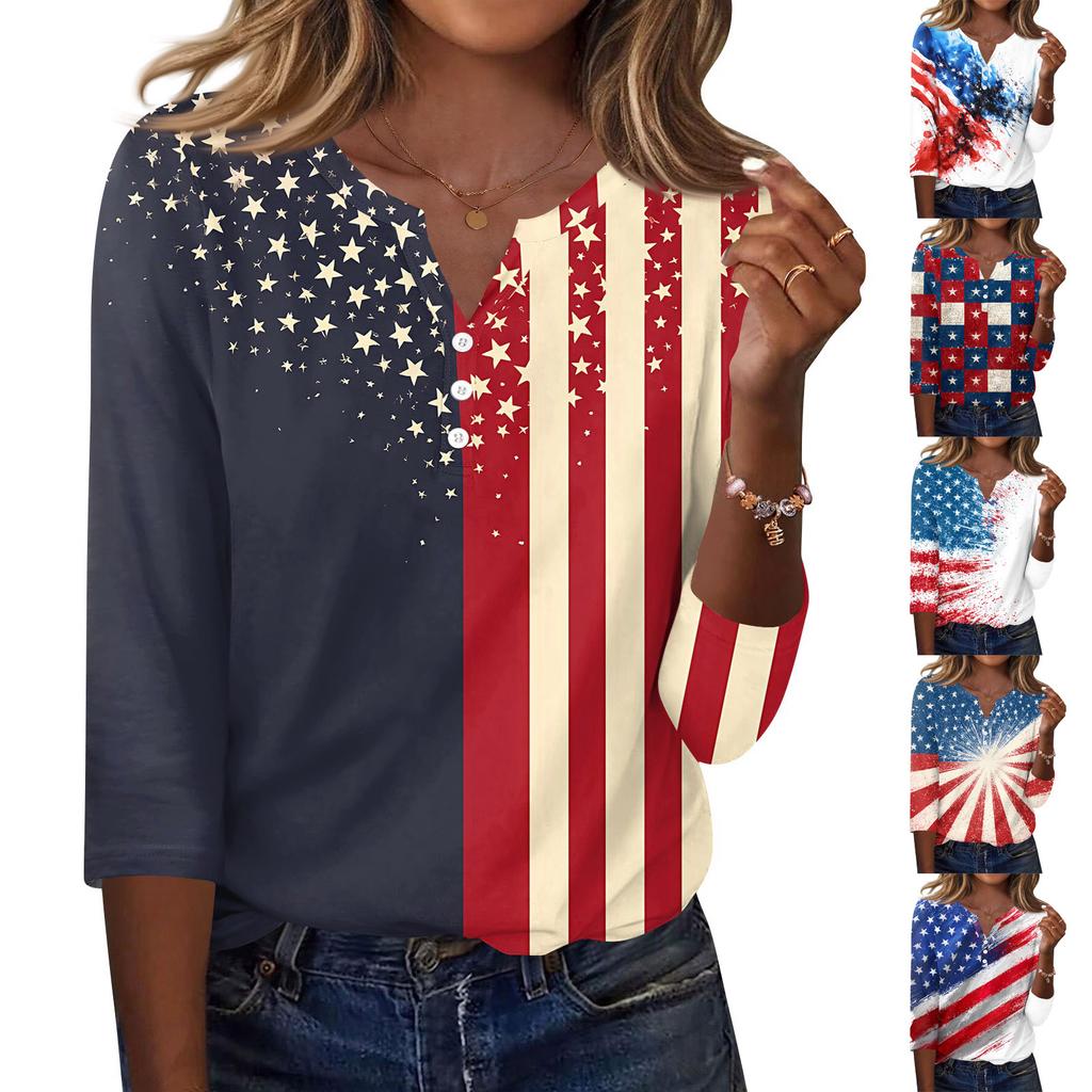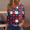 Women's T Shirt Independence Day Print Button 3/4 Sleeve Daily Weekend Fashion Basic V- Neck Regular Top