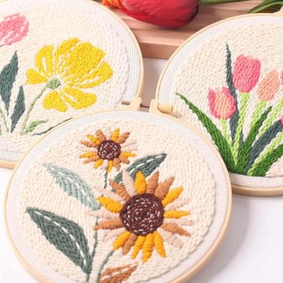 With Hoop Tulip Sunflower Punch Needle Kit Stamped Cloth DIY Gift Punch Needle Embroidery Kits Yarn Thread DIY Embroidery Kit
