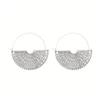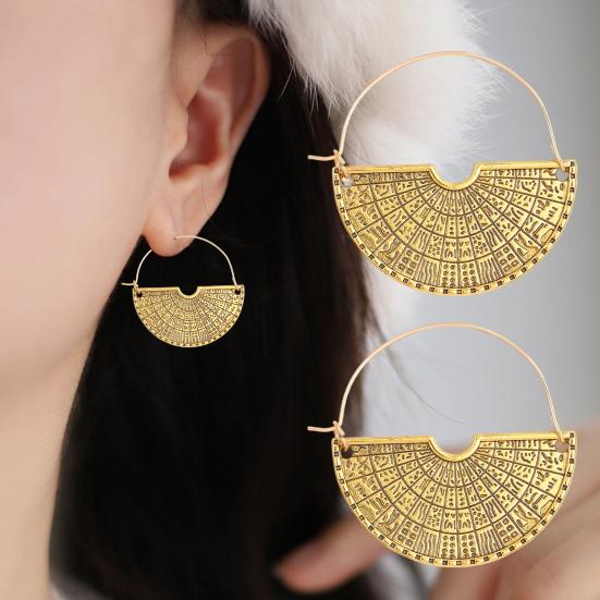 These lightweight earrings feature an exaggerated semicircular fan-shaped design crafted from durable alloy material, ensuring comfortable wear without ear pressure. The surface showcases intricate geometric carvings with clear, three-dimensional lines that catch the light beautifully, adding a rich luster and refined quality.