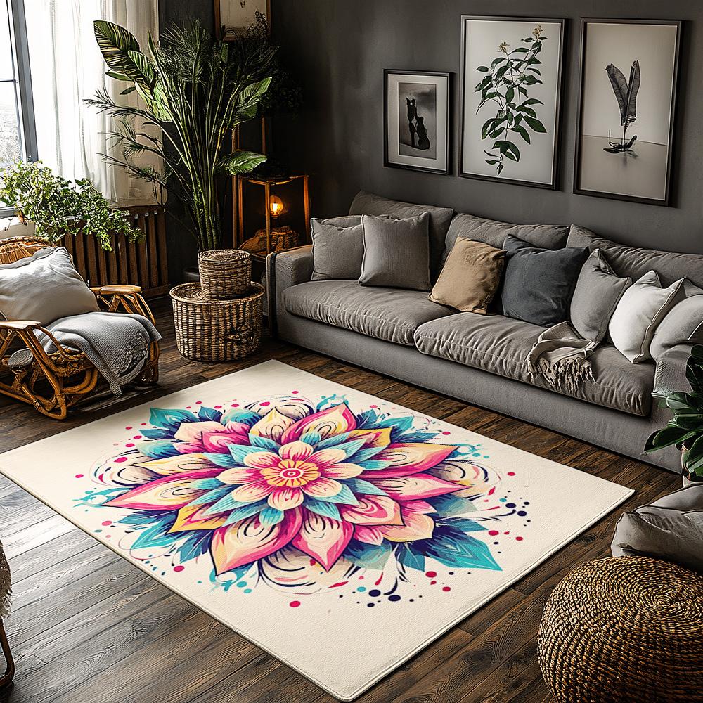 Boho Flower Carpet Washable Non Slip Floor Mat Persian Area Rug Modern Abstract Home Decor Living Room Bedroom Dorm Rug Gift