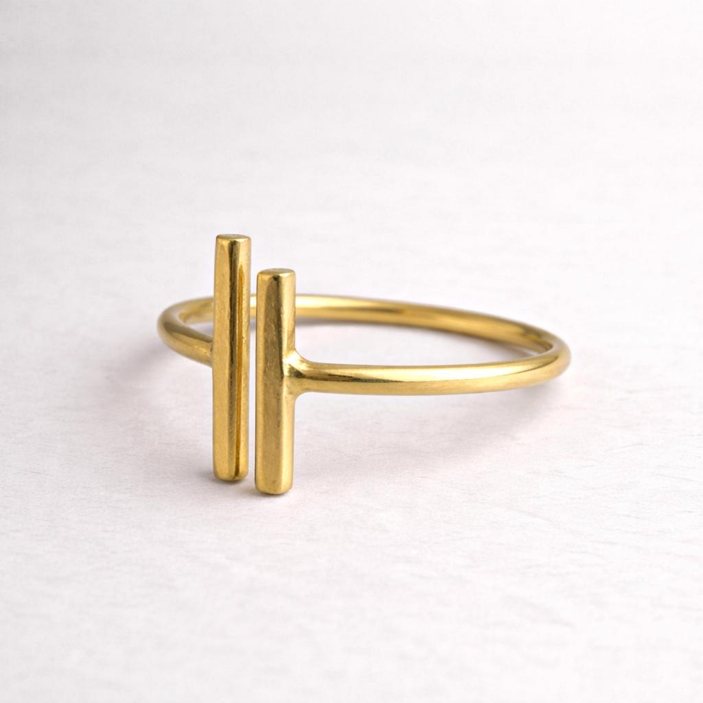 Solid Brass Bar Ring – Minimalist Double Bar Ring, Modern Geometric Band, Dainty Everyday Jewelry