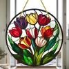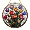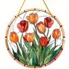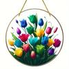 2D Flat Plants Flowers Round Acrylic Decoration Sign, Tulip, Home Decor Plaque Hanging Wall Art Decorative Garden Decoration for Room Door Signs Hangi