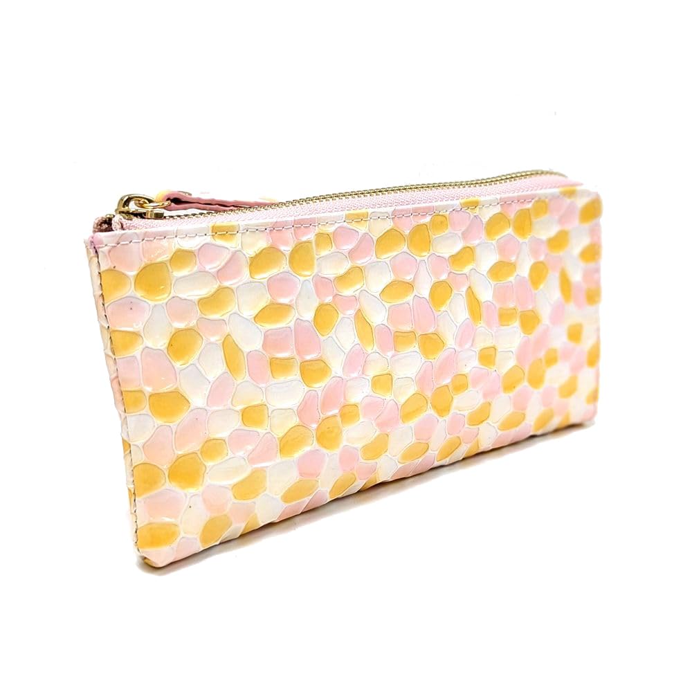 Karukuru Women's Stained Glass-Style L-Zip Long Wallet, FRS-EN006, Pink