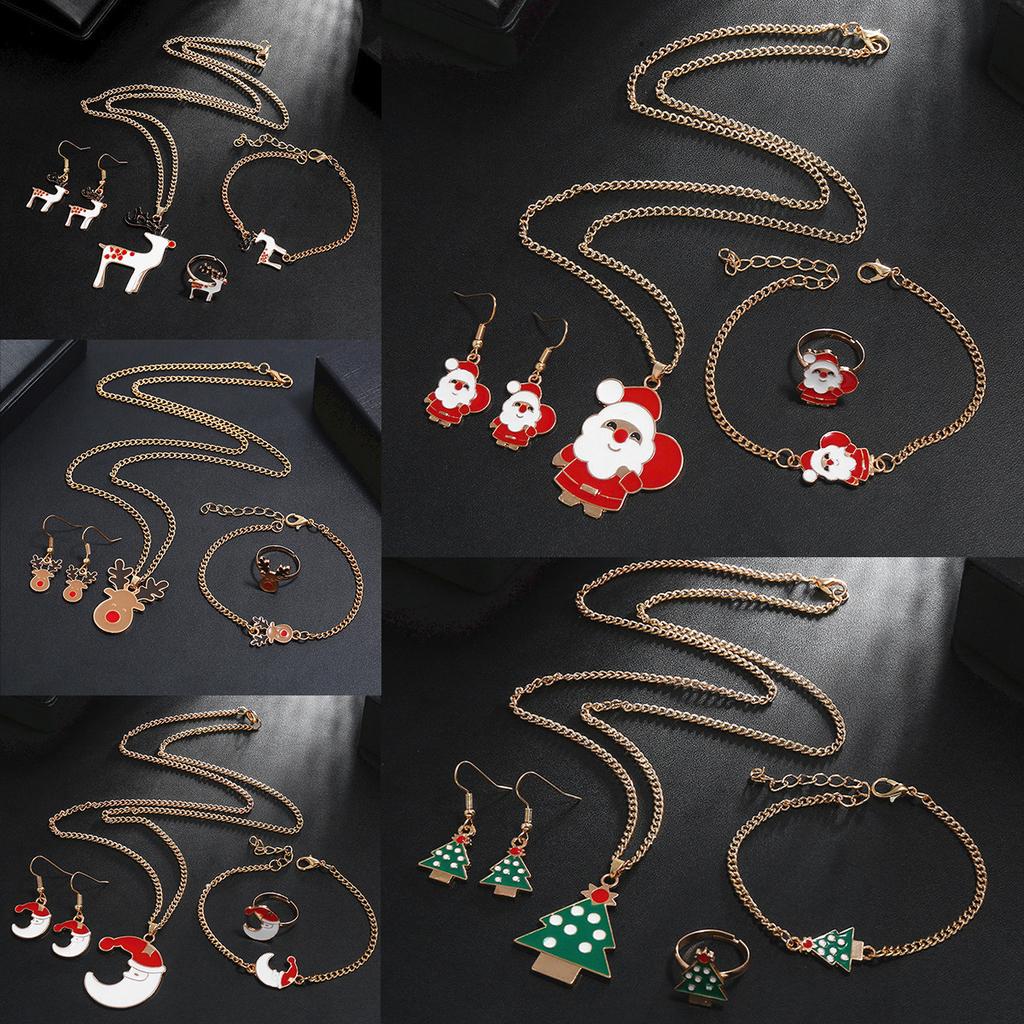 Christmas Bracelets, Earrings, Rings, Necklaces, Four-Piece Set, Christmas Hat, Santa Claus, Elk Earrings.