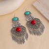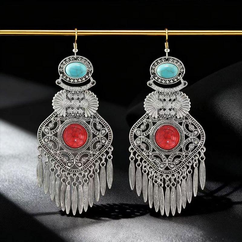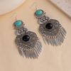 Vintage Ethnic Turquoise Earrings Women'S Bohemian Fringed Earrings Beaded High-End Earrings