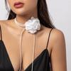 Stylish Retro French Big Flower Chocker Necklace Fringed Lace Tied Neck Chain Female