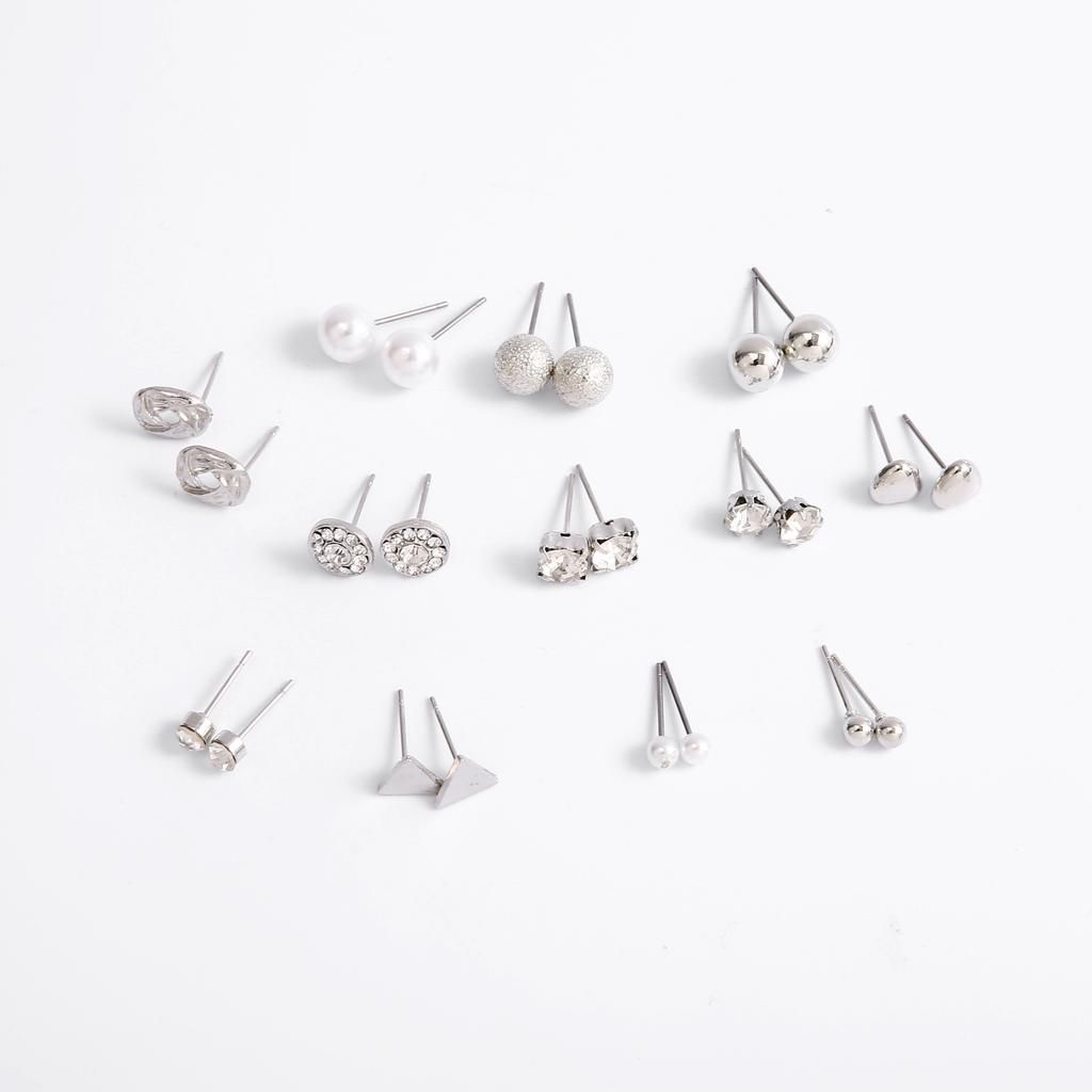 Earrings, Fashion Pearl Sparkling Diamond Zircon 12 Pairs Combination Set Earrings
