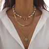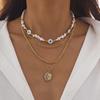 Ethnic Style Pearl Beaded Snake Bone Chain Necklace Retro Sunflower Turquoise Eye Pendant Necklace