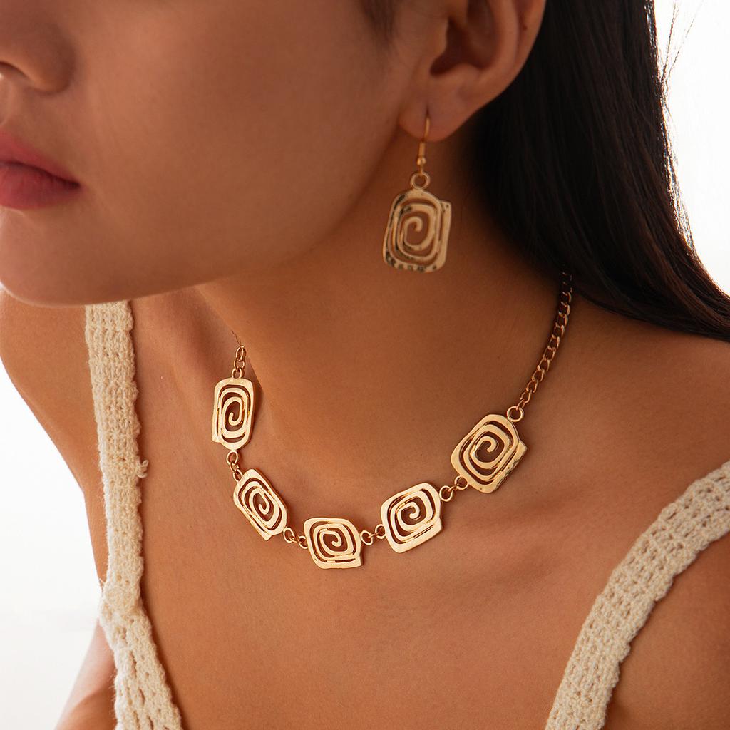 Personality Exaggerated Metal Spiral Pendant Necklace Female Creative Design Geometric Square Wax Line Item Decoration