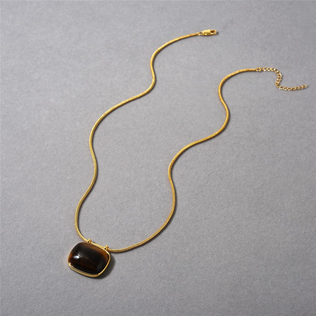 Retro Tiger'S Eye Stone Square Pendant Collarbone Chain Fashionable Commuting Must Enter Simple Temperament Versatile Necklace