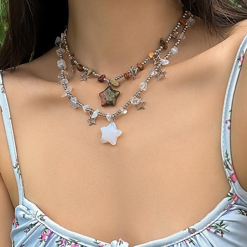 Jewelry Holiday Style Sweet Irregular Gravel Collarbone Necklace, Simple Star Bead Necklace