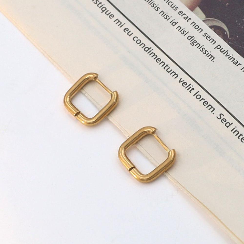 Personality Trend Geometric Earrings Titanium Steel Square Round Wire Ear Buckle Ear Jewelry Premium Niche