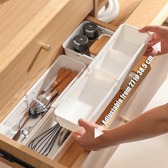 Expandable Design for Optimal Space Utilization: The adjustable length of the storage box allows it to fit perfectly within different drawer sizes. This rational use of space maximizes storage capacity while maintaining an organized environment in any room.