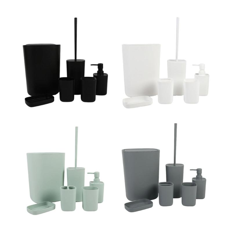 Trash can, soap dish, toilet brush, mouthwash cup, lotion bottle, toothbrush holderx1