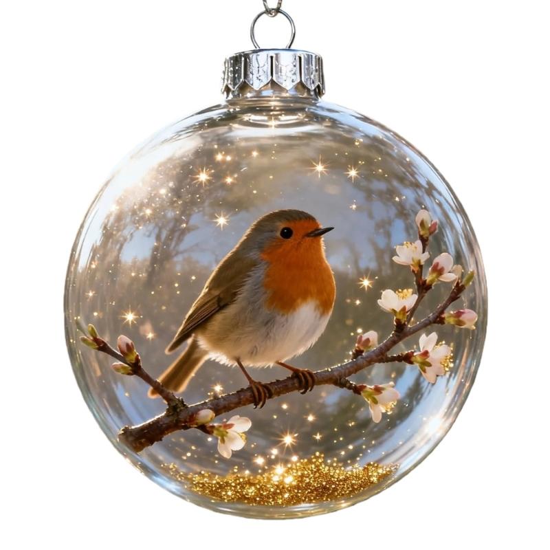 Nature Bird Pattern Clear Acrylic Round Ball Hanging Ornament Ideal For Christmas Collectibles And Interior Styling