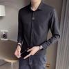Men's Slim Fit Black Long Sleeve Shirt with Side Stripes Casual Business Formal Shirt