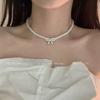 Fashion Pearl Bow Necklace Elegant Versatile Ladies Textured Sweater Chain Collarbone Chain