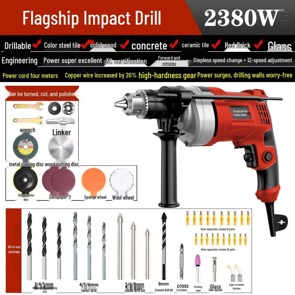 High-Power Variable Speed Impact Drill & Rotary Hammer Electric Screwdriver