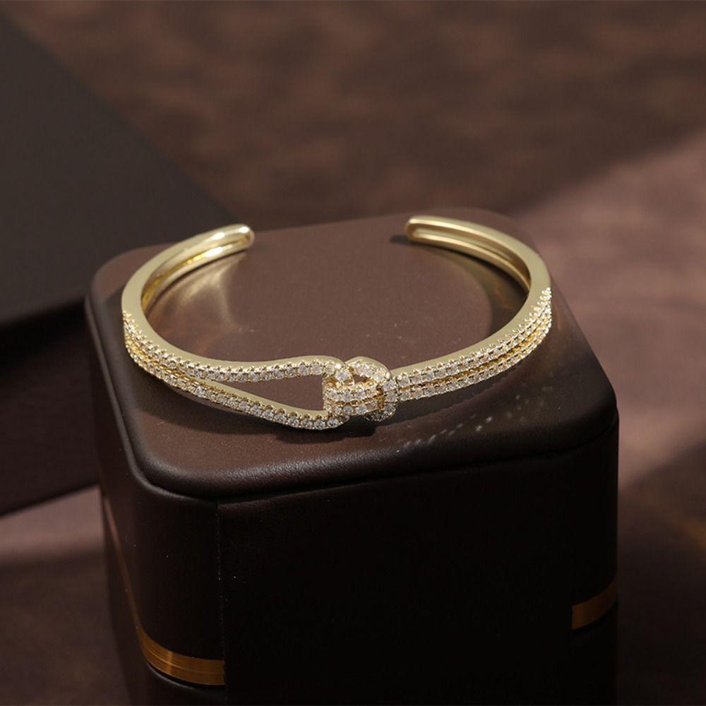 Crystal Knot Cuff Bangles Double Layer Rhinestone Bracelet Simple Cross Wide Open Bangle Women