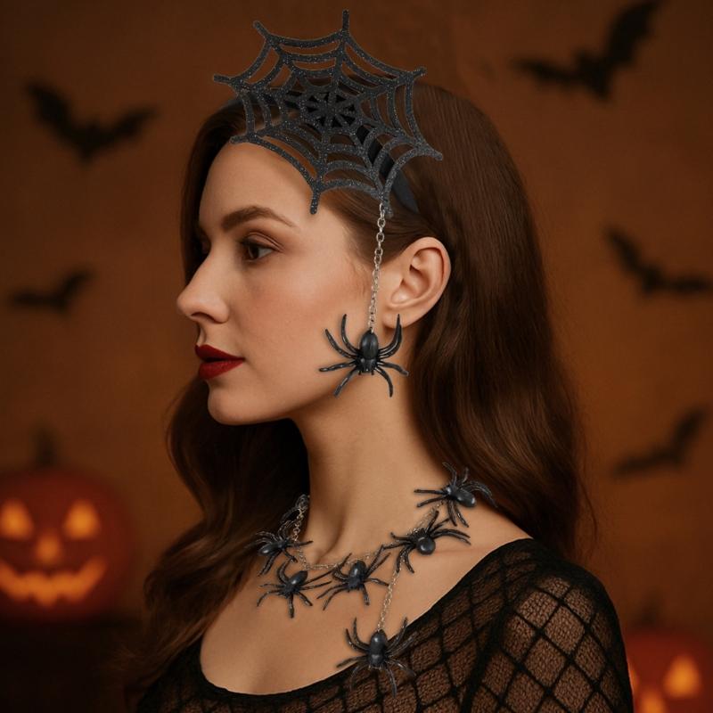 Halloween Costume Spiders Headpiece Necklace Set Portable Durable Party Accessories Nontoxic Plastic Party Decoration