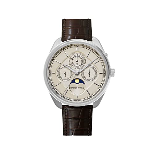 MASTER WORKS Quattro 004 MW21SI-ACDBO8 Men's Watch, Made In Japan, Quartz Movement, 40mm, Leather Strap, Moon Phase, Brown
