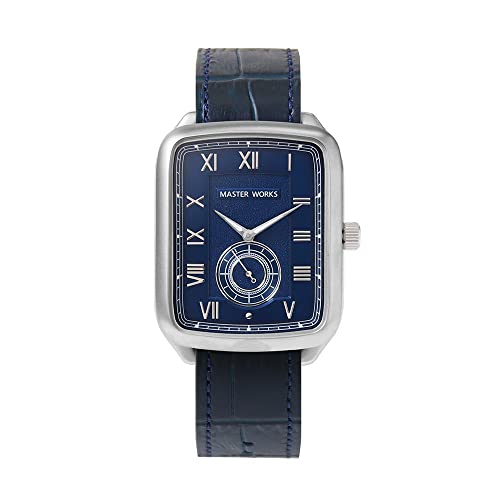 MASTER WORKS Quadrangle MW10SN-GCBLG8 Men's Watch, Made In Japan, Quartz Movement, 33mm, Leather Strap, Square Shape, Navy Blue
