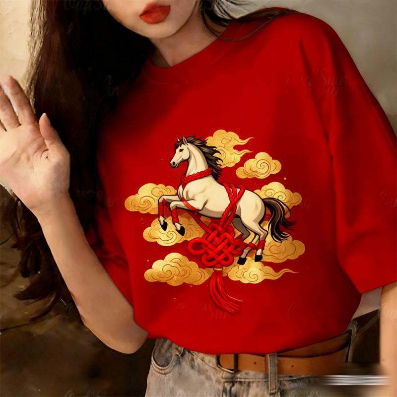 Women Horse Year 3D Printed Tees Summer Casual Street O-Neck Tops Short Sleeves Oversized T-Shirts