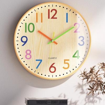 Children's Clock, Living Room Home Wall-mounted Wooden Grain Wall Clock, Silent, Fashionable, Creative Quartz Clock, Bedroom