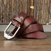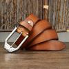 Retro Personalized Hammer Pattern Stainless Steel Button Head Belt Men'S Genuine Leather First Layer Cowhide Trend Versatile Denim Belt Men