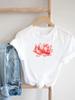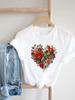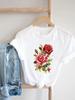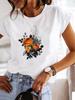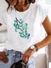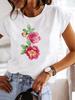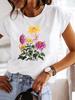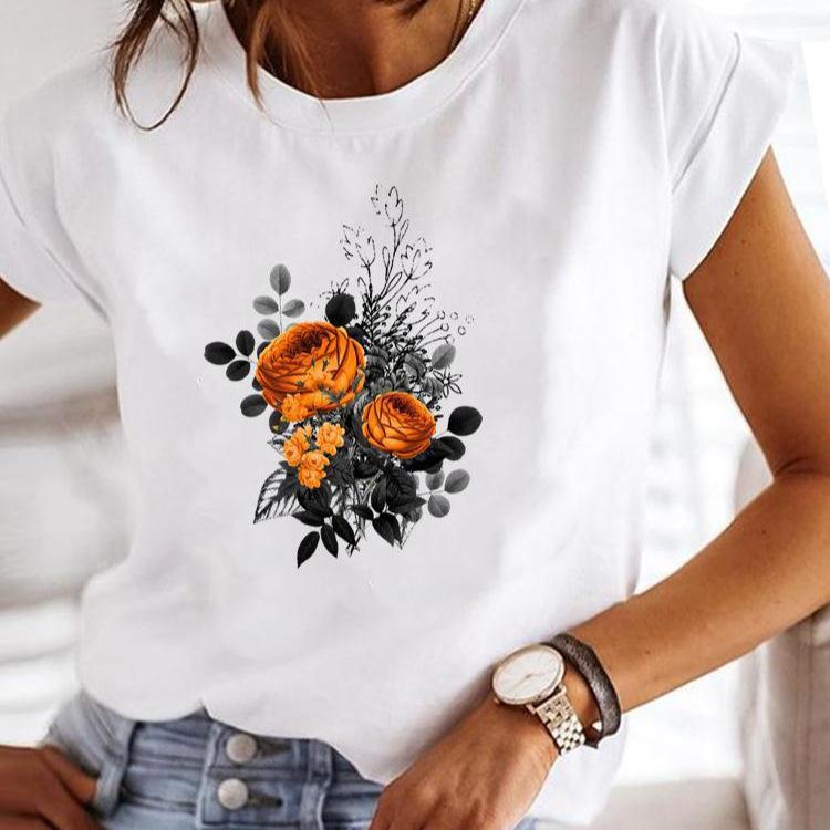 Women's Short-sleeved T-shirt, Fashionable Flower Print Bottoming Shirt