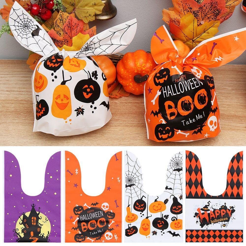 50Pcs Bat Pumpkin Party Supplies Baking Packaging Rabbit Ear Cookie Bag Halloween Candy Bags